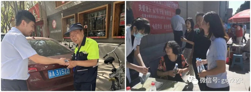 活動(dòng)現(xiàn)場(chǎng),甘肅金控集團(tuán)志愿服務(wù)黨員協(xié)助衛(wèi)生服務(wù)中心、眼科醫(yī)院及社區(qū)工作人員向社區(qū)居民宣傳活動(dòng)、維持秩序,為活動(dòng)工作人員、社區(qū)街道社區(qū)的環(huán)衛(wèi)工人、交警等戶外工作人員在炎炎夏日送去清涼的礦泉水,向社區(qū)老人開展防范電信詐騙宣傳,提醒老人如何防止自己被騙,保護(hù)自己和家人的財(cái)產(chǎn)安全。