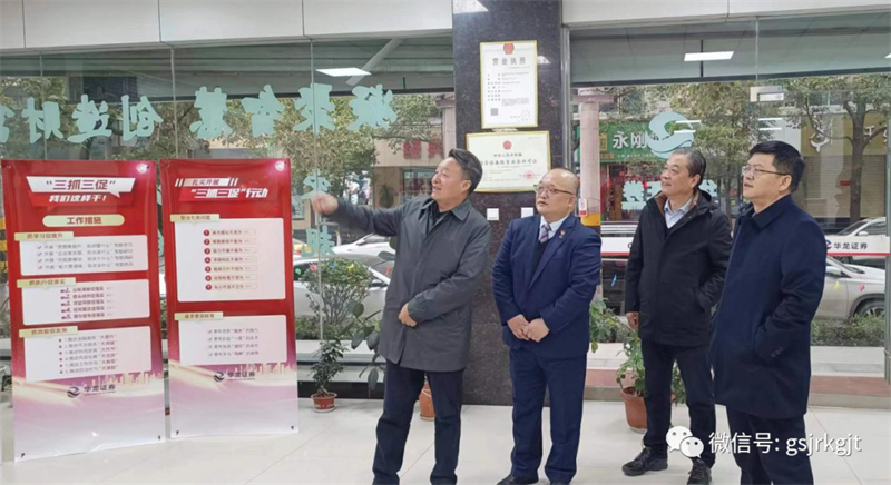 在華龍證券隴南建設(shè)路營業(yè)部,祁建邦詳細(xì)了解業(yè)務(wù)工作運(yùn)行情況以及單位員工的工作、生活情況,勉勵(lì)大家在工作崗位上再接再厲取得更大成績。