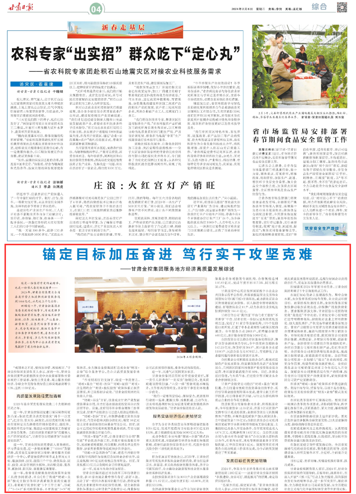 編輯: 來源:甘肅日報 甘肅金融控股集團有限公司 更新:2024年02月06日 19:15 點擊:[]