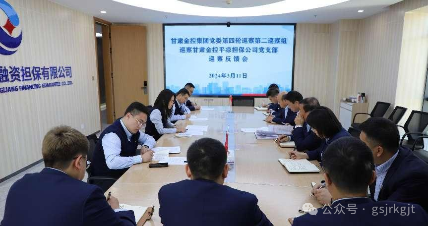 根據甘肅金控集團黨委巡察工作領導小組部署,2024年3月7日至12日,集團黨委第一、第二巡察組分別向金控擔保集團黨委、金控平涼擔保公司黨支部、隴原資本公司黨支部反饋巡察情況。巡察組長傳達了集團黨委書記祁建邦同志在聽取本輪巡察工作綜合匯報時的講話精神,代表巡察組向三家黨組織進行反饋,被巡察黨組織負責人主持會議并就做好巡察整改工作作表態發言。