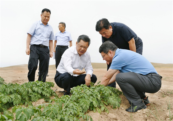 省委副書記、省長任振鶴8月19日在蘭州市永登縣調研抗旱減災工作。他強調,要深入學習貫徹8月17日中央政治局常委會會議精神,深刻認識當前旱情的嚴峻性和做好抗旱減災工作的緊迫性,立足保障國家糧食安全、鞏固拓展脫貧攻堅成果、穩住農業快速發展勢頭,全力做好抗旱減災各項工作,最大限度降低旱情損失,確保城鄉居民飲水安全,確保農業生產安全,齊心協力、多措并舉打贏防旱抗旱這場硬仗。