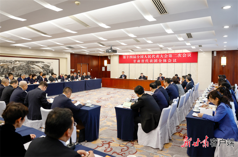 十四屆全國人大二次會議甘肅代表團3月3日在駐地召開會議。全國人大代表、省委書記、省人大常委會主任胡昌升主持會議。