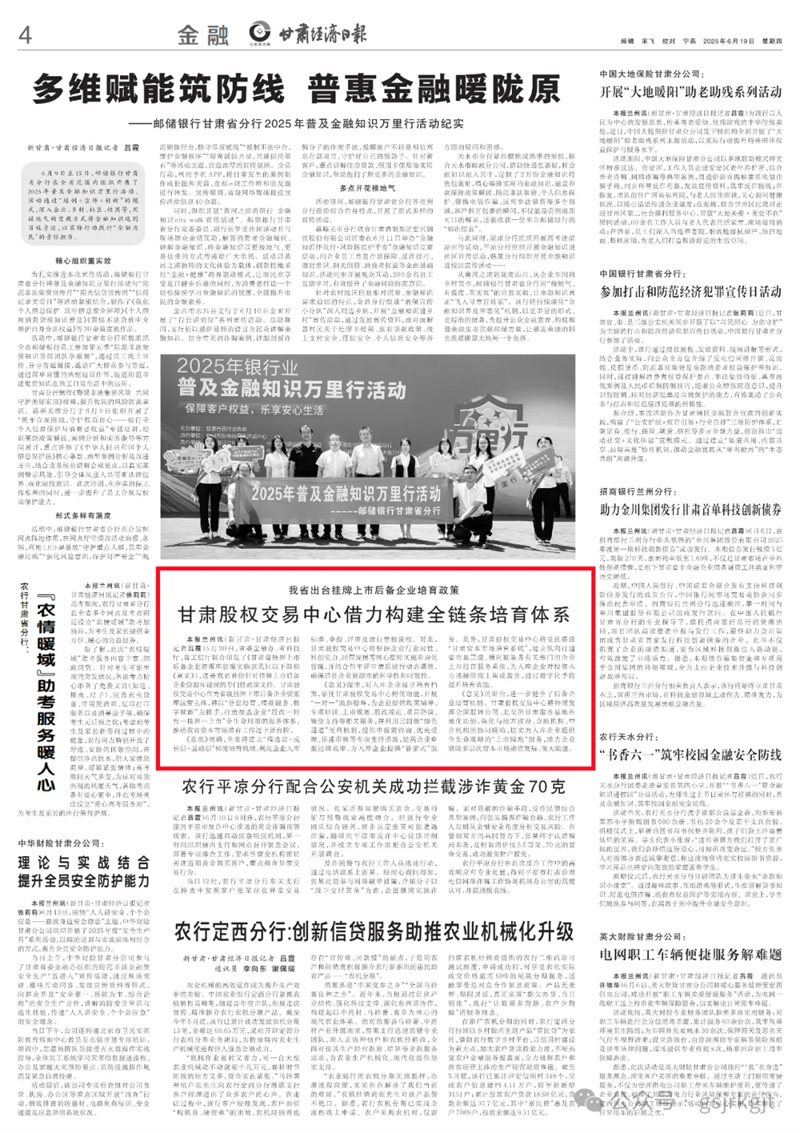 媒體關注 | 我省出臺掛牌上市后備企業培育政策 甘肅股權交易中心借力構建全鏈條培育體系