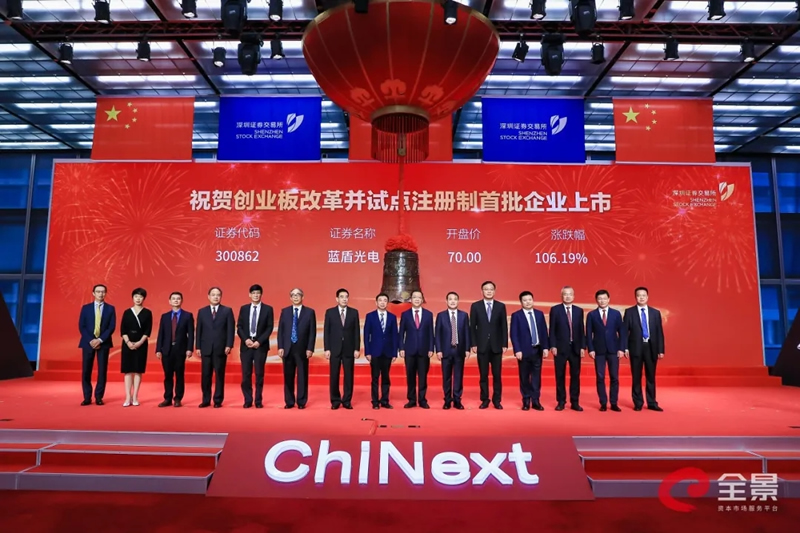 2020年8月24日,華龍證券保薦與主承銷的安徽藍盾光電子股份有限公司(股票代碼:300862,股票簡稱:藍盾光電)在深圳證券交易所創業板成功掛牌上市,成為注冊制下創業板首批18家掛牌企業之一。中共中央政治局委員、國務院副總理劉鶴發表書面致辭,中共中央政治局委員、廣東省委書記李希,中國證監會主席易會滿出席上市儀式并致辭,廣東省省長馬興瑞,深圳市委書記王偉中出席上市儀式。全國人大財經委、全國人大常委會法工委、最高人民法院、國家發改委、科技部、工信部、商務部、國資委等單位有關負責同志出席上市儀式。甘肅金控集團黨委書記、董事長,華龍證券黨委書記、董事長陳牧原作為藍盾光電保薦機構代表出席了掛牌儀式。藍盾光電子前身是成立于2001年的銅陵藍盾光電子有限公司,于2005年整體變更設立為股份有限公司,是國內智能交通行業領先的產品供應商和系統集成商。公司主營高端分析測量儀器制造、軟件開發、系統集成及工程、運維服務、數據服務和軍工雷達部件,產品和服務主要應用于環境監測、交通管理、氣象觀測和軍工雷達等領域??蛻糁饕獮槿珖h境監測、公安、交通、氣象等政府部門、企業及科研單位和部隊等。公司在光學、電子及信息技術、精密機械制造等領域積累了五十余年的科研和生產經驗,是我國儀器儀表行業內具有較強自主創新能力的成長型創新創業企業。藍盾光電子本次IPO公開發行股票3,297萬股,發行價格為33.95元/股,募集資金總額約為11.19億元。本次募集資金投資項目聚焦于公司近年增長速度較快的環境監測領域。募投項目的實施,將進一步提升公司研發實力、提升公司生態環境監測全產業鏈綜合服務能力、加快公司承擔的國家重大科研專項的產業化進程,有利于公司搶抓環境監測公共服務供給模式改變而帶來的市場機遇,鞏固公司環境監測運維市場行業地位。華龍證券投行團隊依據多年深耕資本市場積累沉淀下來的豐富經驗,通過深入調研和專業高效的盡職調查工作,為藍盾光電子量身打造了上市方案。從首次申報到歷次反饋、再到順利過會,華龍證券與藍盾光電子建立了互信共贏的伙伴關系,并助力藍盾光電子駛入資本快車道,借助資本市場的優質資源配置能力進一步快速、健康、可持續發展,做大做強!華龍證券北京分公司(投資銀行)已在北京、上海、深圳、杭州、蘭州、安徽等地區設立了業務分部,項目遍及全國。投資銀行團隊業務經驗豐富、職業操守良好、工作規范嚴謹、進取精神強烈。經過二十年的磨礪,華龍證券投資銀行業務取得了長足的發展:專業隊伍不斷壯大,專業技術和專業經驗不斷積累,專業化的服務水平不斷提高,在很多細分領域和細分行業華龍現已走到市場前沿,證券研發、營銷、創新等綜合實力不斷提升,公司已經具備大型股票、債券發行項目運作的實力和經驗,并和一批國際性企業龍頭建立了長期的戰略合作關系。華龍證券將始終秉承客戶價值最大化這一發展宗旨,致力于為客戶提供專業化、精準化、多元化的服務?!耙阅鸀楸荆扇诉_己”,華龍證券愿與您攜手同行,共創偉業。