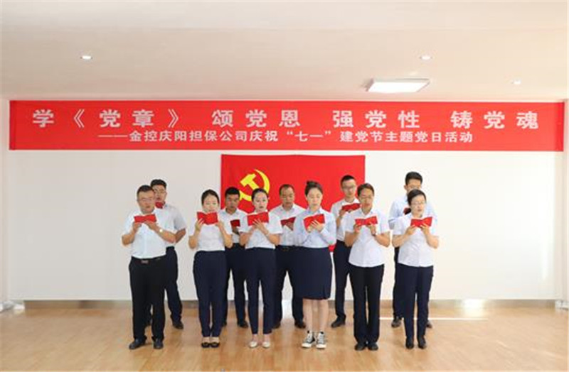 6月30日,在中國共產(chǎn)黨建黨99周年之際,金控慶陽擔(dān)保黨支部開展以“學(xué)《黨章》、頌黨恩、強黨性、鑄黨魂”為主題的慶祝“七一”建黨節(jié)主題黨日活動,公司全體黨員重溫《入黨誓詞》,集體誦讀《中國共產(chǎn)黨章程》,感悟初心、牢記使命,推動集團公司黨委“轉(zhuǎn)觀念、破積習(xí)、追標桿、強基礎(chǔ)、提效能”主題實踐活動持續(xù)深入開展。