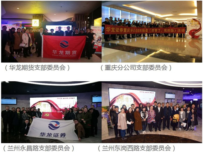 華龍證券股份有限公司黨委根據(jù)公司“兩學(xué)一做”學(xué)習(xí)教育制度和學(xué)習(xí)十九大精神系列活動(dòng)計(jì)劃,認(rèn)真安排部署,積極組織全體黨員、干部、員工開(kāi)展《厲害了,我的國(guó)》主題黨日觀影活動(dòng),為每人購(gòu)買2張影票,與家人朋友一同觀影。不僅豐富公司學(xué)習(xí)活動(dòng)內(nèi)容,提高精神素養(yǎng),感受新時(shí)代祖國(guó)翻天覆地變化,同時(shí)傳遞正能量,增強(qiáng)企業(yè)凝聚力,激發(fā)昂揚(yáng)斗志,鼓舞全體人員朝氣蓬勃邁向未來(lái)。