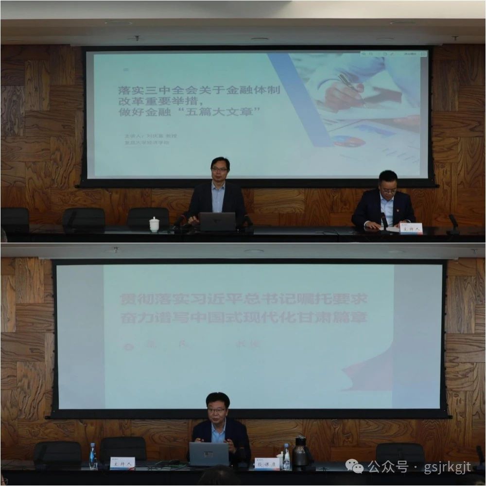 此次培訓(xùn)通過線上線下相結(jié)合的方式進(jìn)行。培訓(xùn)期間,全體學(xué)員在線學(xué)習(xí)了黨的二十屆三中全會精神解讀、構(gòu)建高水平社會主義市場經(jīng)濟(jì)體制、健全推動經(jīng)濟(jì)高質(zhì)量發(fā)展體制機(jī)制、提高黨對進(jìn)一步全面深化改革、推進(jìn)中國式現(xiàn)代化的領(lǐng)導(dǎo)水平等內(nèi)容,邀請復(fù)旦大學(xué)經(jīng)濟(jì)學(xué)院劉慶富教授從“黨的二十屆三中全會關(guān)于金融體制改革的重要舉措解讀、做好金融五篇大文章、異常交易的監(jiān)管”三個大方面,對中國金融體制改革的歷程、成效與經(jīng)驗,進(jìn)一步深化金融體制改革的方向與重點,“金融五篇大文章”的背景、內(nèi)涵與產(chǎn)業(yè)與落地,金融大數(shù)據(jù)風(fēng)險管理等內(nèi)容作了全面深入的輔導(dǎo)。邀請甘肅省委黨校康民教授通過“講好黃河‘故事’做足黃河文章,構(gòu)建現(xiàn)代產(chǎn)業(yè)體系、發(fā)展新質(zhì)生產(chǎn)力,貫徹三中全會精神、進(jìn)一步全面深化改革,加強(qiáng)文化遺產(chǎn)保護(hù)傳承、推動文化創(chuàng)新發(fā)展,加強(qiáng)社會建設(shè)和治理、提升基層治理效能,毫不放松堅持黨的領(lǐng)導(dǎo)、加強(qiáng)黨的建設(shè)”六個方面,對學(xué)習(xí)貫徹習(xí)近平總書記視察甘肅重要講話重要指示精神,作了脈絡(luò)清晰、深入細(xì)致的專題解讀。